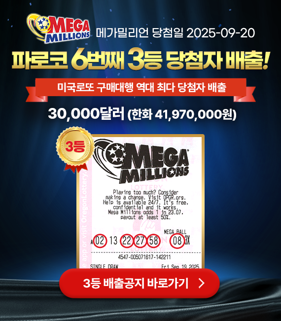 이는 국내 미국 복권 구매대행 서비스 업계에서 유일무이한 최고 기록으로, 당사의 자랑이라 할 수 있습니다.